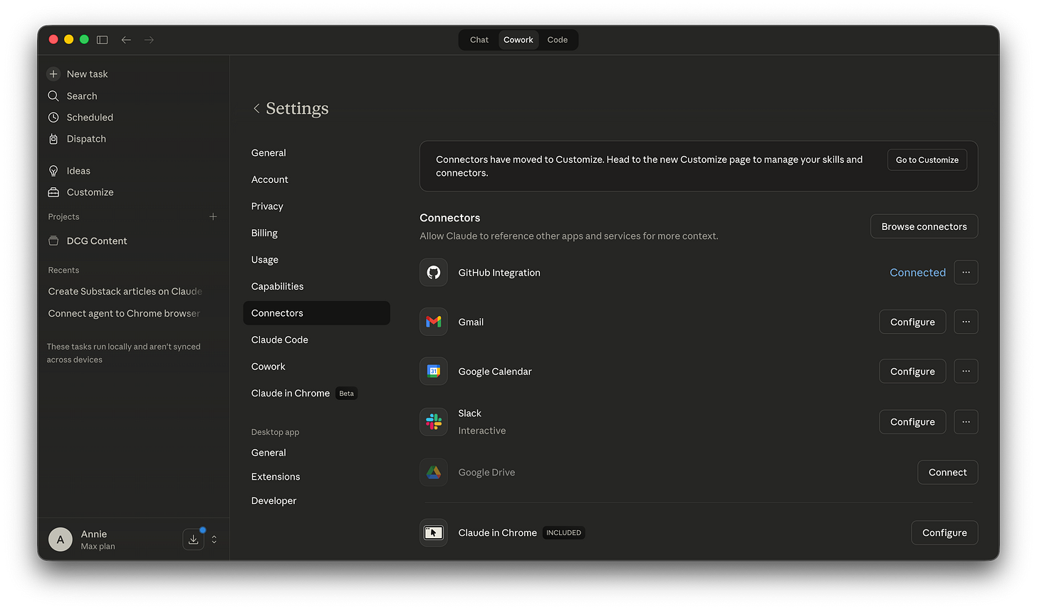 For this specific agent, you will also need a Gmail account and a Slack workspace. Both connect to Cowork through built-in connectors, and the setup takes less than two minutes per app.